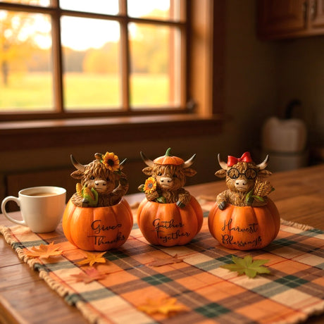 Harvest Highland Cow – Resin Fall Tabletop Accent Figurines