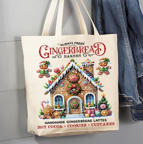 Christmas Gingerbread Bakery House Canvas Tote Bag