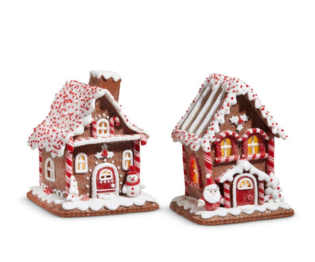 Lighted Peppermint Gingerbread House – Santa or Snowman (7")