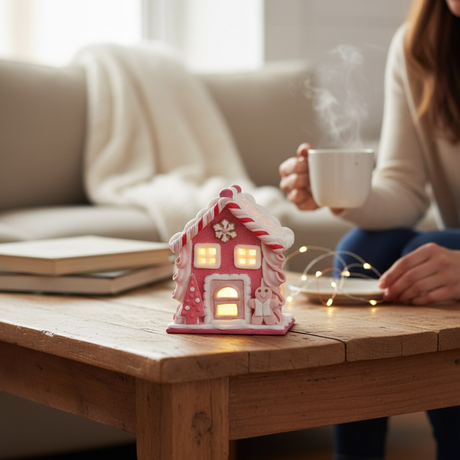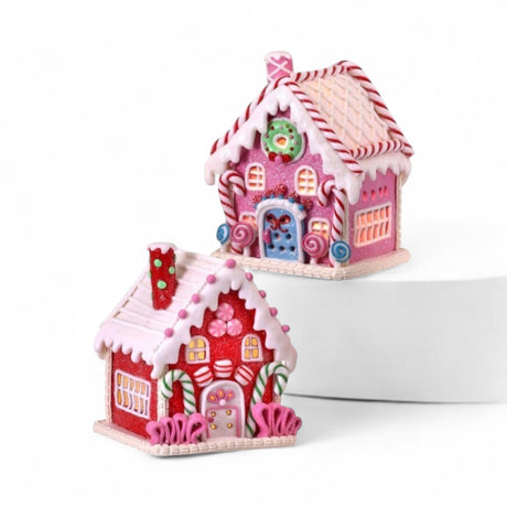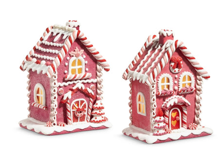 Lighted Gingerbread Peppermint House – Holly or Wreath (9")