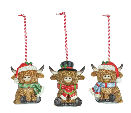 Highland Cow Ornaments – Choice of Hamish, Nollaig, or Clementine