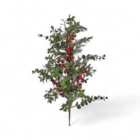 28" Eucalyptus, Pine & Berry Spray – Faux Christmas Greenery Stem with Mixed Textures