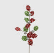 Merry Metallic Ball and Holly Leaf Spray – Red, Green & Silver 28.25″ Holiday Stem