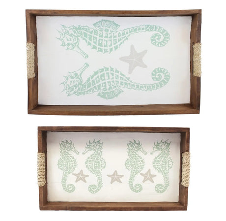 Beachcombers Coastal Life Seahorse Nesting Tray Set – Aqua & Rope Detail