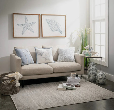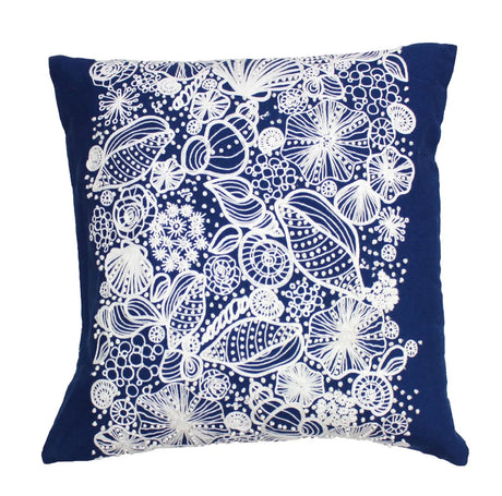 Beachcombers Coastal Life – Blue Shell Embroidered Throw Pillow – 17.75" Square