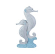 Make a bold coastal statement with this Set of 2 Large Seahorse Figurines from Beachcombers Coastal Life. Crafted from resin, each seahorse stands 8" tall and features a wave-riding base with soft, sandy blue tones and ocean-inspired detailing. Whether styled together or placed separately, they evoke the quiet beauty of marine life and the rhythmic charm of the sea.