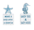 One plaque showcases a textured starfish with the phrase “Make a Wish Upon a Starfish,” while the other features a graceful seahorse above the words “Sandy Toes & Salty Kisses.” Together, they bring a splash of whimsy and warmth to mantels, shelves, and summer vignettes.