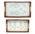 Add a splash of coastal charm to your home with this Set of 2 Seahorse Nesting Trays from Beachcombers Coastal Life. Crafted from pine wood and stained in a warm beachy brown, each tray features aqua-colored seahorses and starfish motifs that evoke the serenity of the sea.