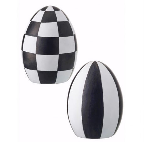 Terracotta Harlequin Easter Egg – Black & White 5.5″ Spring Decor