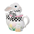 From the cozy kitchens comes a bunny who’s found the perfect hiding spot—a pastel and checked teapot, just the right size for a springtime nap. This Brunch Bunny in Teapot Figurine by Regency is crafted from hand-painted resin and features a soft white bunny peeking out from a scalloped-edge teapot adorned with bold black and white checks and delicate floral accents.