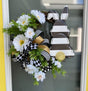 Where farmhouse charm meets dapper delight, the Farmhouse Bunny Grapevine Wreath brings a bold yet whimsical presence to your year-round decor. Handcrafted on a 16" oval grapevine base, this wreath features a striking black-and-white striped bunny with a glittering gold tail—styled to perfection and ready to hop into your home with flair.