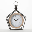 Metal Pentagon Desk Clock – Floating Timepiece with Light Wood Bezel