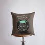 This handcrafted pillow cover features a bubbling black cauldron on a warm brown background, with the iconic phrase: