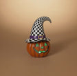 Add a dash of mischief and monochrome magic to your Halloween styling with this Black & White Checked Witch Hat Jack-O’-Lantern by Gerson. Standing at a bold 10" tall, this resin pumpkin features a classic carved grin and a whimsical checked topper—perfect for decor trays, mantels, and spooky shelf vignettes.