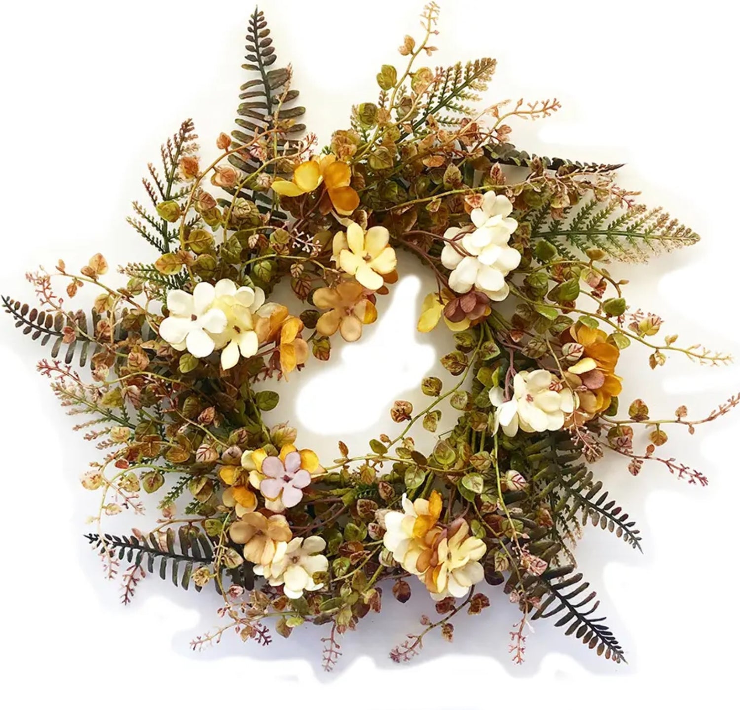 Whether hung in an entryway, layered into a gallery wall, or nestled into a tiered tray, this wreath brings a gentle nod to nature’s golden shift.