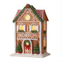 Step into a sugar-dusted storybook with this charming lighted gingerbread house from RAZ Imports. With its classic brown claydough walls, white icing trim, and frosted rosemary-style trees flanking the entrance, this piece feels like it was plucked straight from a holiday bakery window. A soft glow from within adds warmth and whimsy, making it perfect for mantels, kitchen displays, or a festive cocoa bar.