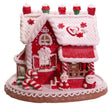 Welcome to the Claus’ cozy confectionery cottage! This 9" LED lighted gingerbread house by Kurt Adler (SKU GBJ0015) is crafted from claydough and adorned in classic red and white Christmas hues. Santa and Mrs. Claus greet guests from the peppermint-pillared porch, while a bay window, icing-draped roof, and whimsical detailing make this piece a standout in any holiday vignette.