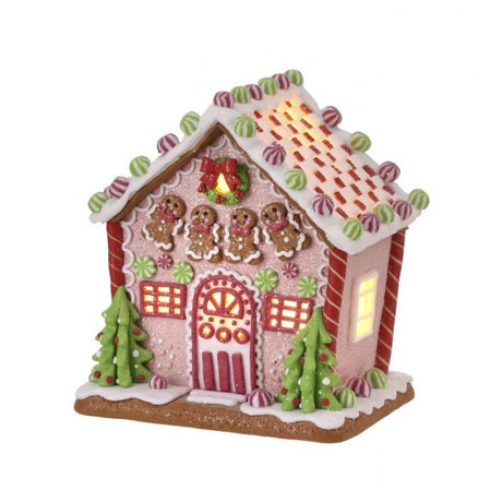 Lighted Pink Gingerbread House – 11.5" Clay Dough Christmas Tabletop Accent