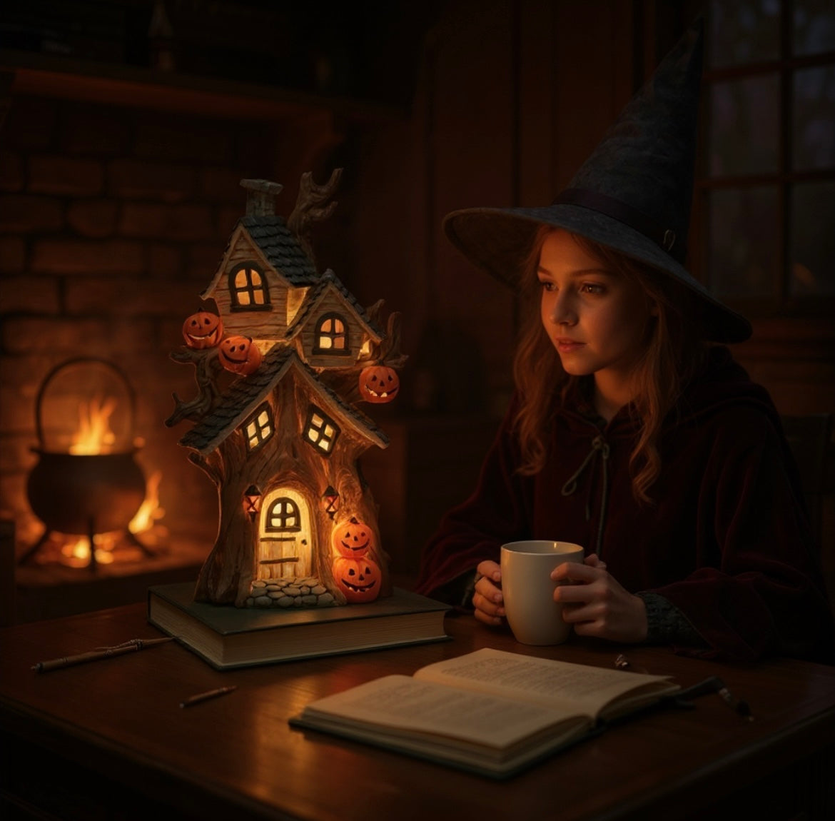 Whether perched on a mantle or nestled into a Halloween vignette, this haunted house sets the stage for spooky storytelling and seasonal enchantment. The built-in timer ensures it lights up like clockwork—just as the witching hour begins.