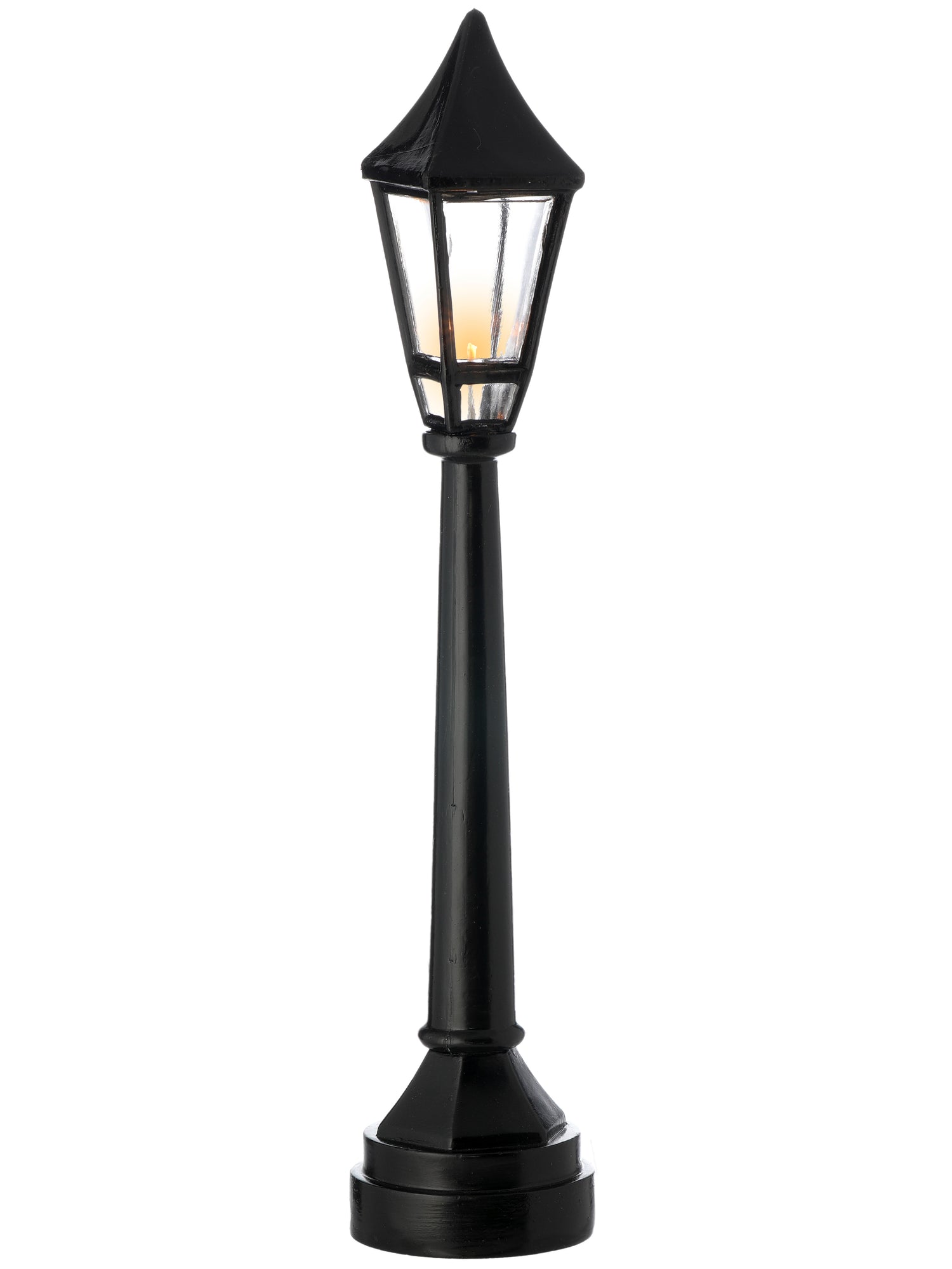 Looking for just the thing to complete your tablescape? This 16.5" street lamp may just be what you're looking for. Working on 2AA batteries (not included), this lamp has a beautiful warm glow provided by a LED bulb. It has a 6 on 18 off timer so you can set it once and let it delight you at the same time each day.