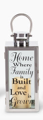 Built & Love Lantern – “Home Where Family is Built and Love is Grown” Polished Metal LED Lantern