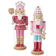 Add a sprinkle of sugar and a dash of whimsy to your holiday decor with the Candy Sweet Treats Nutcracker by Regency. Standing 12.5″ tall, these resin figurines are frosted in glitter and dressed in candy-themed regalia—featuring vibrant hues of pink, red, and blue, with peppermint and pastry-inspired details.