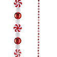 The peppermints feature a sculpted swirl design that catches the light just so, while the coordinating balls add playful contrast and volume. Lightweight yet substantial, it drapes beautifully without sagging, and its flexible construction allows for easy shaping around greenery, ribbon, or twinkle lights.