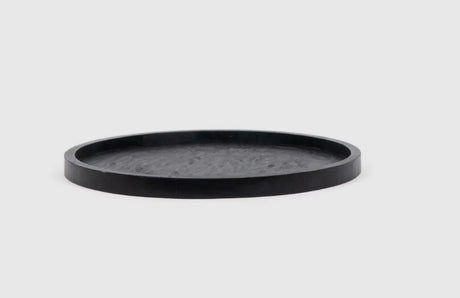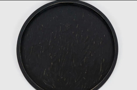 Round Wooden Tray - Distressed Black Finish with Carved Texture