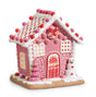 A soft LED light glows from within, casting a cozy ambiance perfect for mantels, kitchen counters, or gingerbread village vignettes. With its classic color palette and handcrafted charm, this house is a must-have for candy-themed décor, nostalgic Christmas scenes, or bakery-inspired styling.