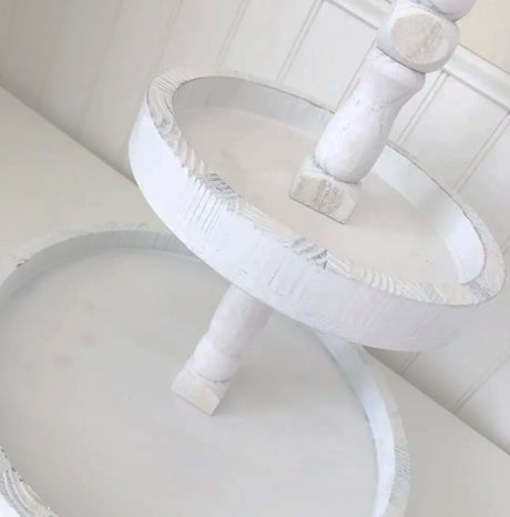 Round Tiered Tray – Distressed White Finish, 15" Base