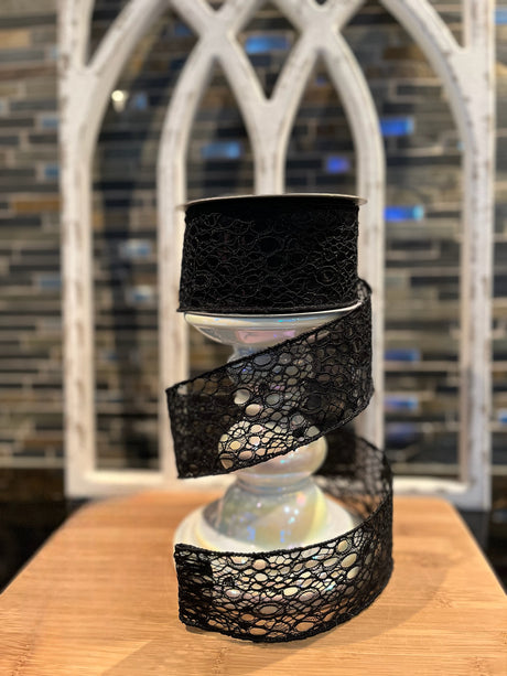 Black Cobwebs Ribbon – 2.5" Wired Halloween Trim by Farrisilk
