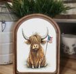 Loyal & Proud: Highland Cow & Rustic Patriotism Arch Top Framed Art