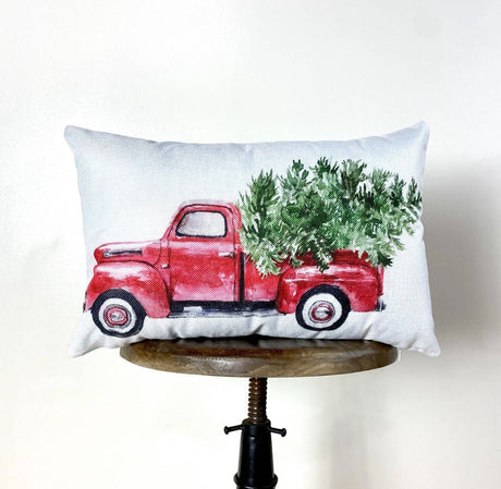 Old Red Truck with Tree Pillow Cover – 18" x 12"