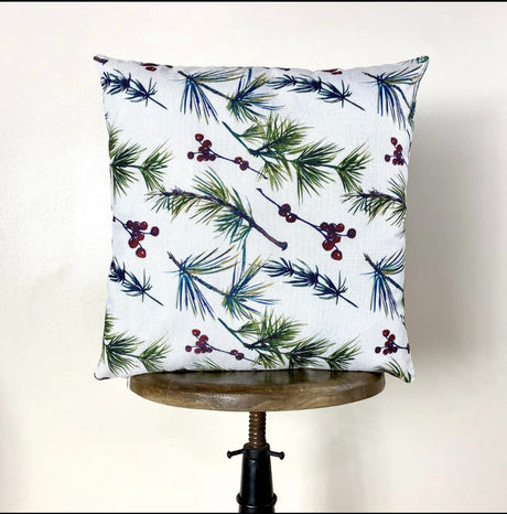 Christmas Holly Berries and Twigs Throw Pillow Cover – 12" x 12"