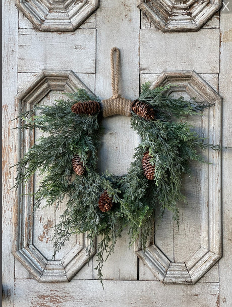 Silver Thread Cedar Wreath – 16" Snowy Winter Pinecone Wreath