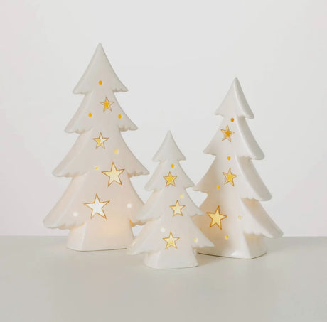 Glitter-Dusted Resin Trees – Set of 3 Distressed White