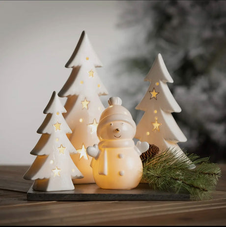 Retro Snowman Figurine – 13.5″ Resin Holiday Accent with Gifts & Cardinal