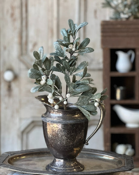 Iced Kissed Mistletoe Pick – 16" Glittered Accent Stem