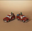 Bring vintage holiday charm to your seasonal styling with these Santa in Red Truck figurines from Gerson. Each jolly Santa rides in a classic red pickup, waving merrily as he heads off to deliver cheer. Available in two directional styles—right-facing or left-facing—these festive accents are perfect for symmetrical mantle displays, tiered trays, or standalone holiday vignettes. With hand-painted details and nostalgic flair, they capture the magic of a country Christmas.
